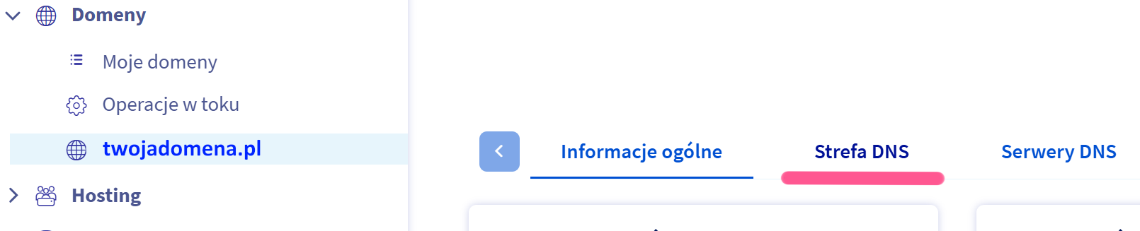 Przejdź do ustawień swojej domeny i otwórz sekcję DNS / strefa DNS.