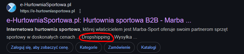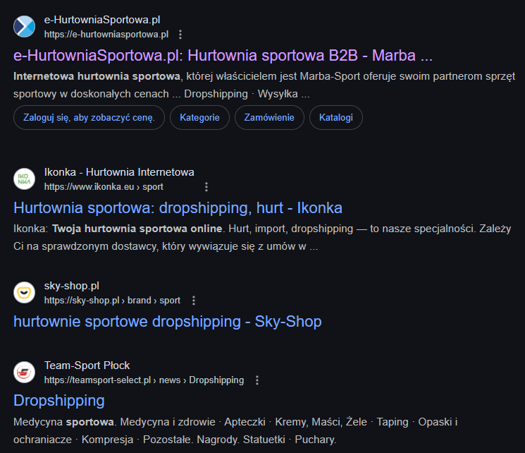 W wyszukiwarce wpisujesz “Hurtownia {nisza} dropshipping”: