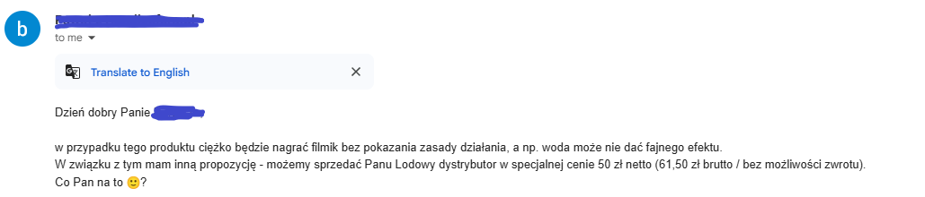 Oto realny przykład jak może wyglądać taka pierwsza konwersacja z hurtownią: