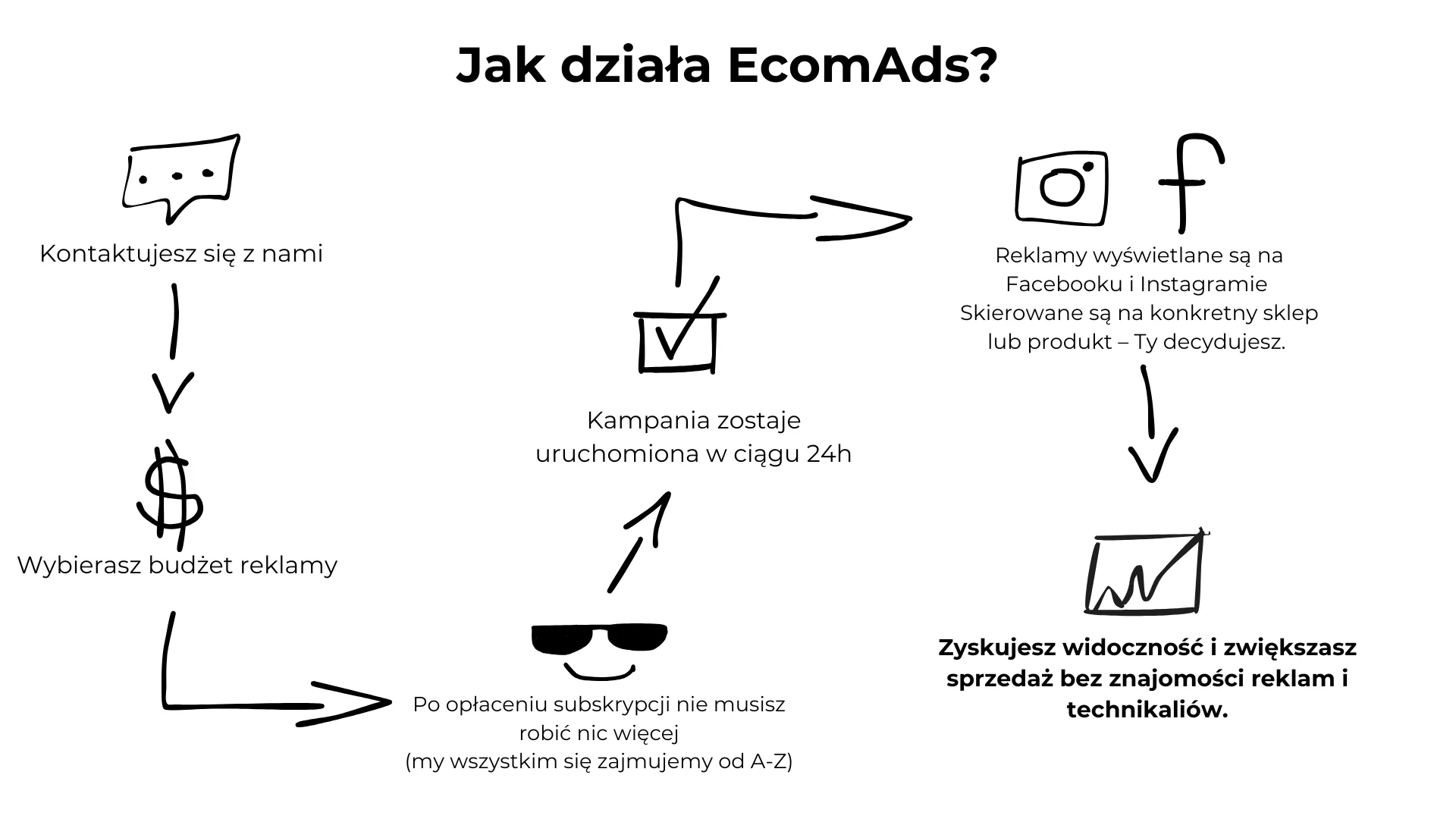 EcomAds to prosty sposób na pozyskiwanie klientów z płatnych reklam – bez znajomości marketingu i bez angażowania się w techniczne aspekty reklam.